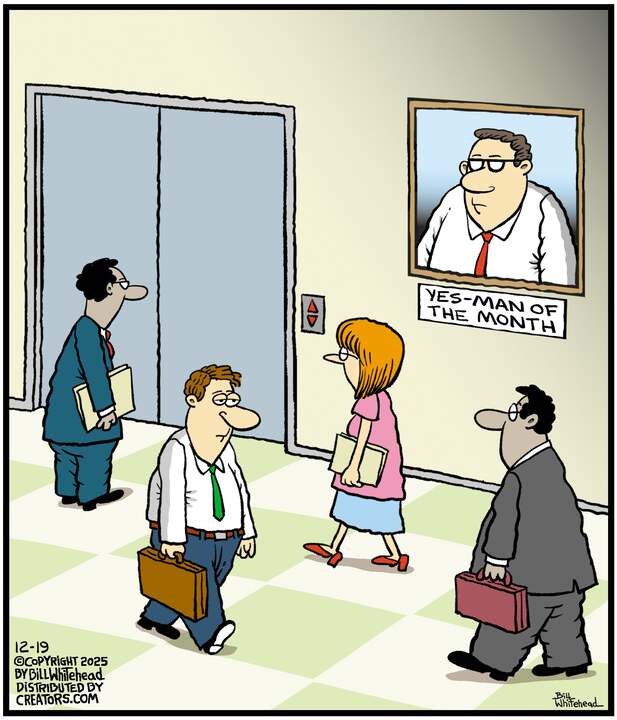 Bill’s career in cartooning started in the fifth grade, when he would copy drawings from comic strips, the New Yorker magazine and editorial cartoons. After a while he developed his own style, focusing primarily on the drawing. He soon realized his characters would need something to do and say, so he gave them their own odd little world to live in. Soon everyone around him became fair game. By college, Bill was cartooning for the school paper. Later, he created posters for book and record stores and freelanced for the Saturday Evening Post, Advertising Age, the Boston Phoenix, Wall Street Journal and King Features. In the '80s, he syndicated Sidelines, a sports panel cartoon.